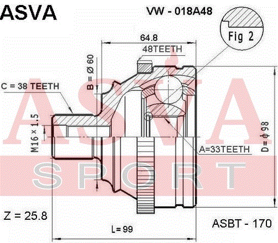 ШРУС внешний 38/33 | перед | |