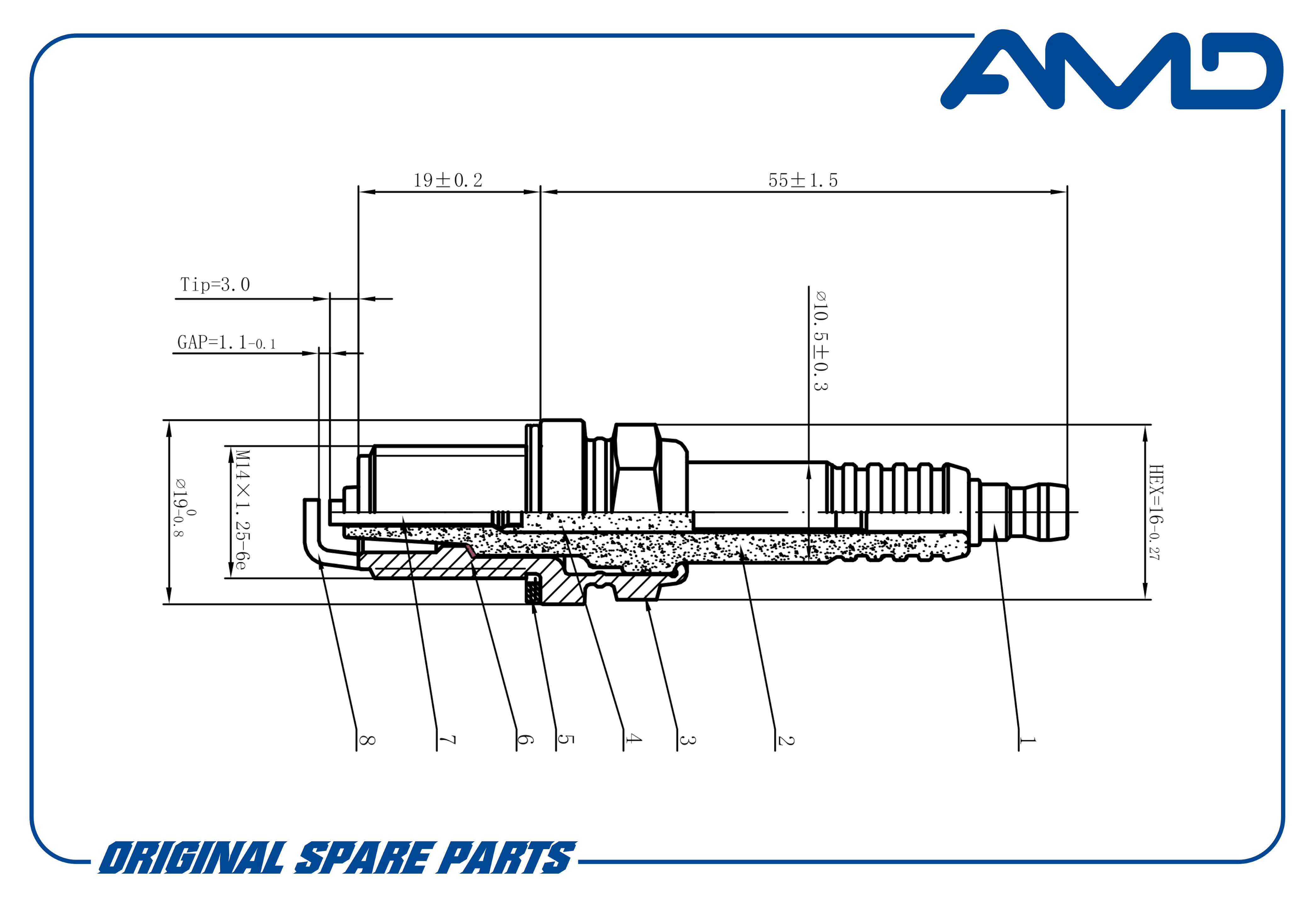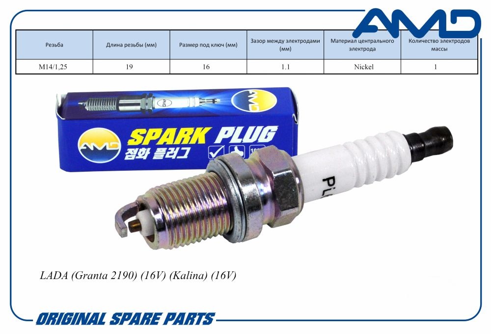 Свеча зажигания 7700500155 BKR-6EZ AMD.PL51, 1 электрод массы, Nickel, AMD