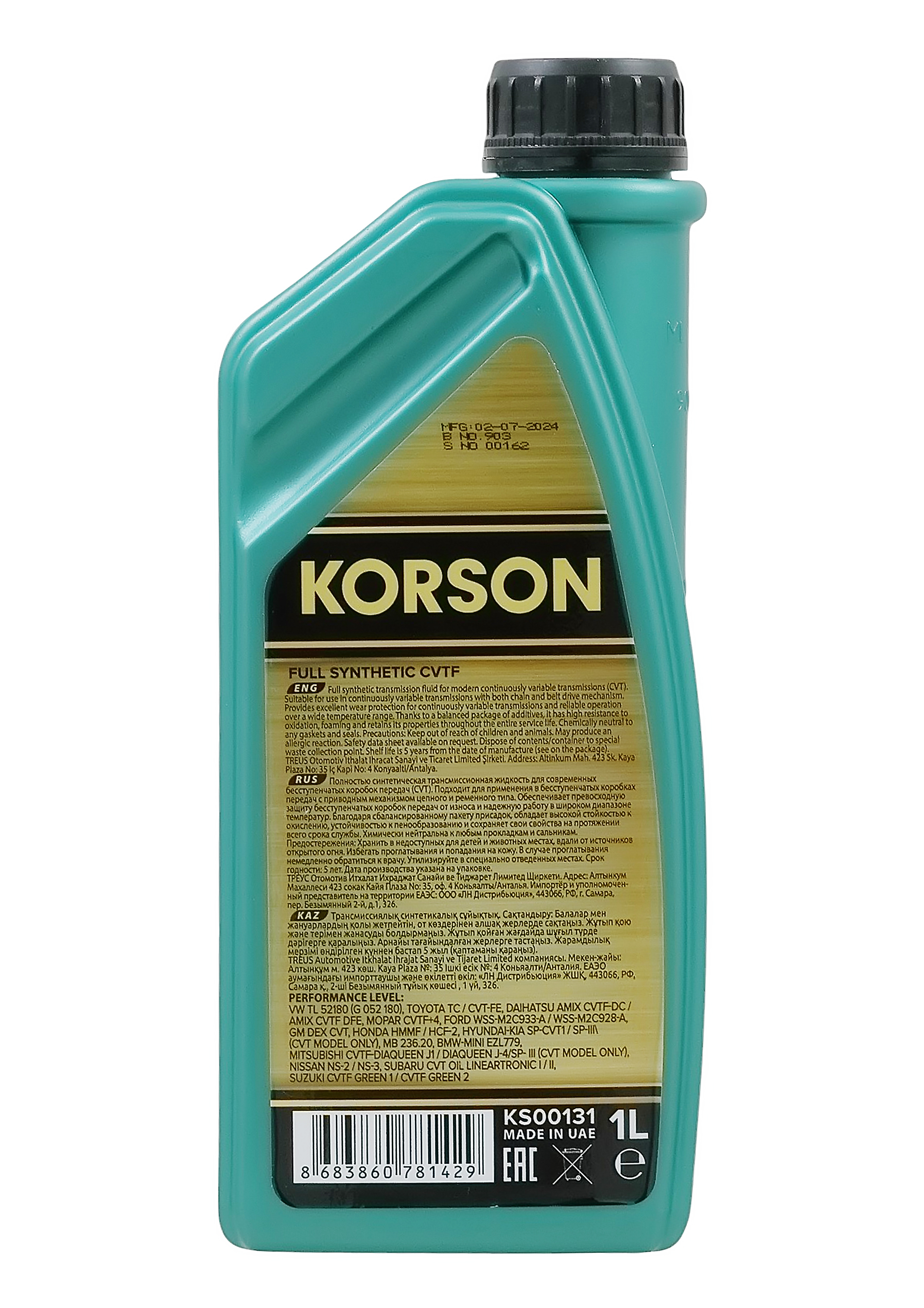 Синтетическое автомобильное трансмиссионное масло CVTF FULL SYNTHETIC 1л