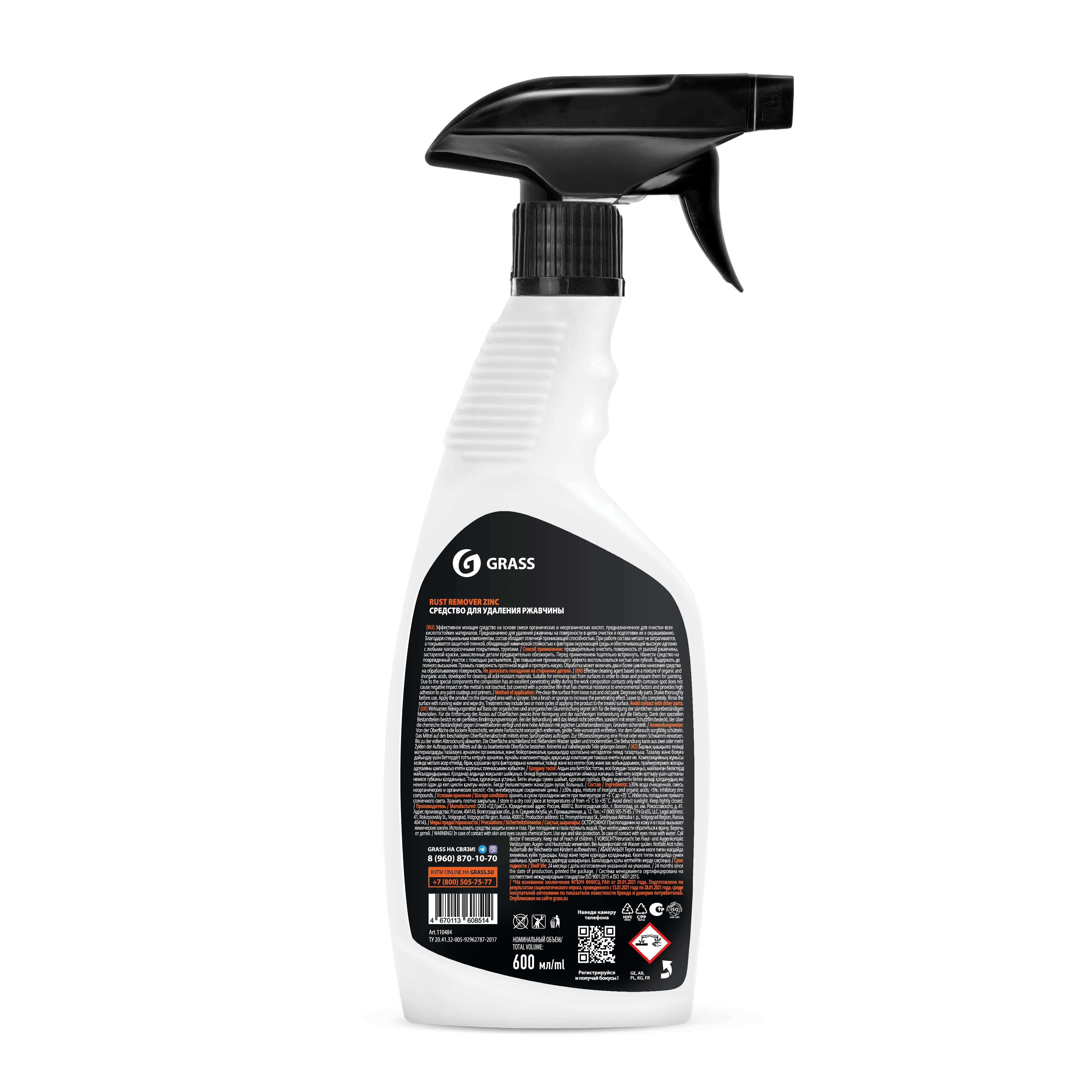 Средство для удаления ржавчины Rust remover Zinc, 600мл., НОВИНКА