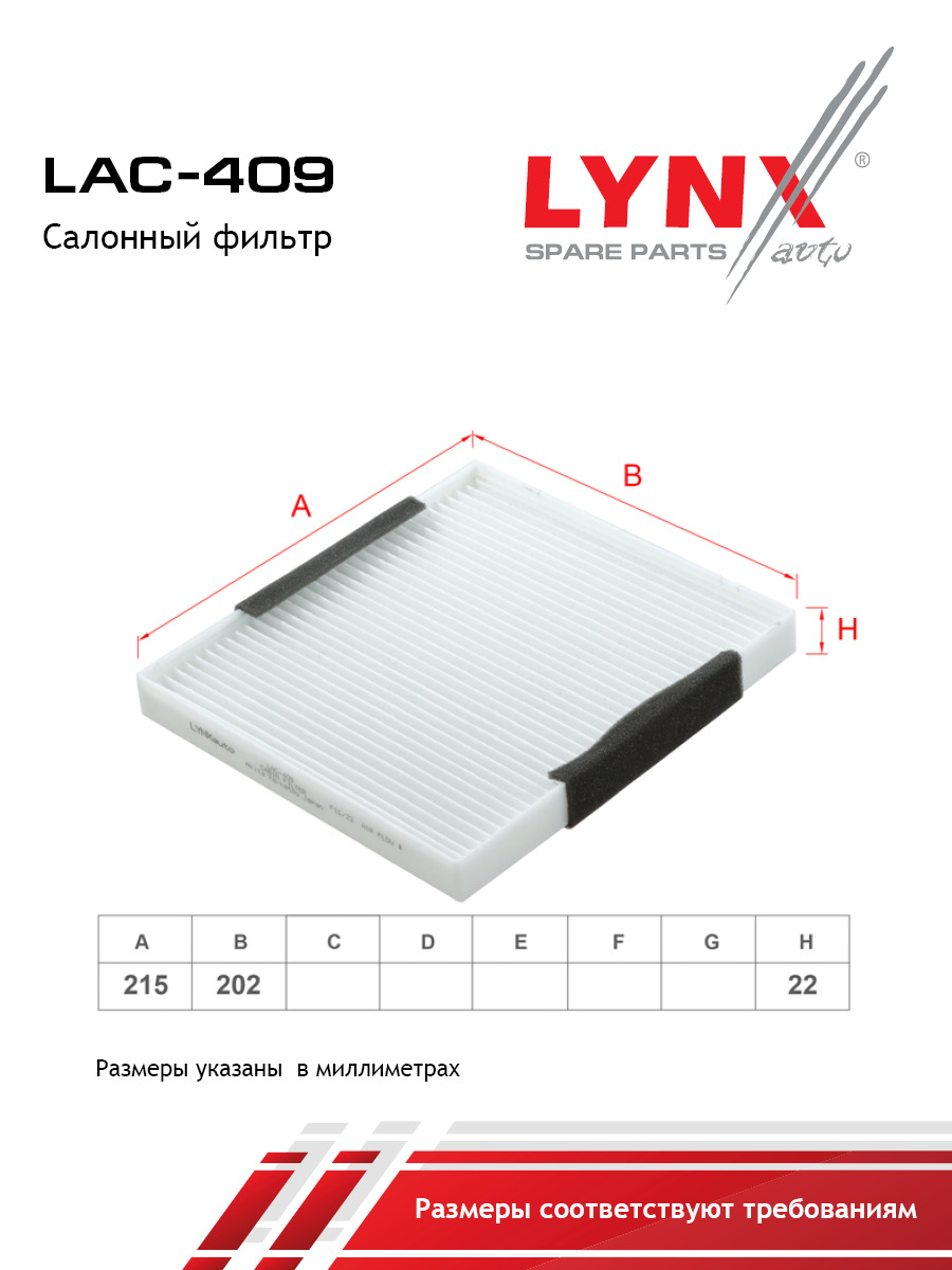 LAC-409 LYNXauto Салонный фильтр
