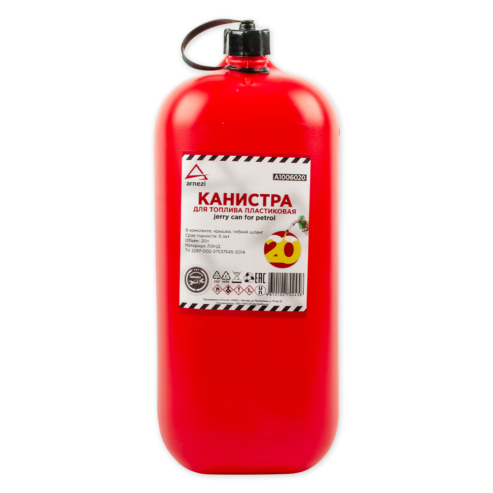 Канистра 20л для топлива пластиковая, с мерной шкалой и лейкой / красная