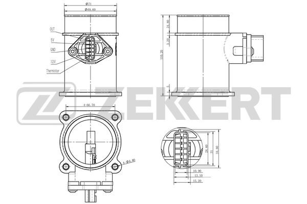Датчик массового расхода воздуха Nissan Almera (N16) 00-, Almera Tino (V10) 00-, Primera (P11,P12,WP11,WP12) 00-