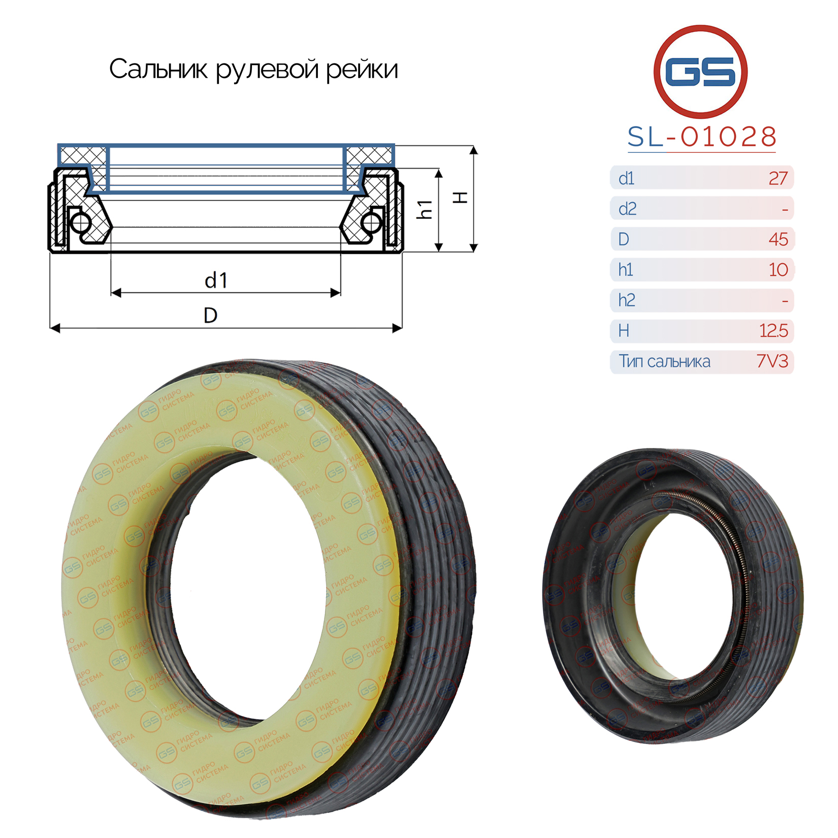 SL-01029 GS Сальник рулевой рейки 27*45*10 (7V1)