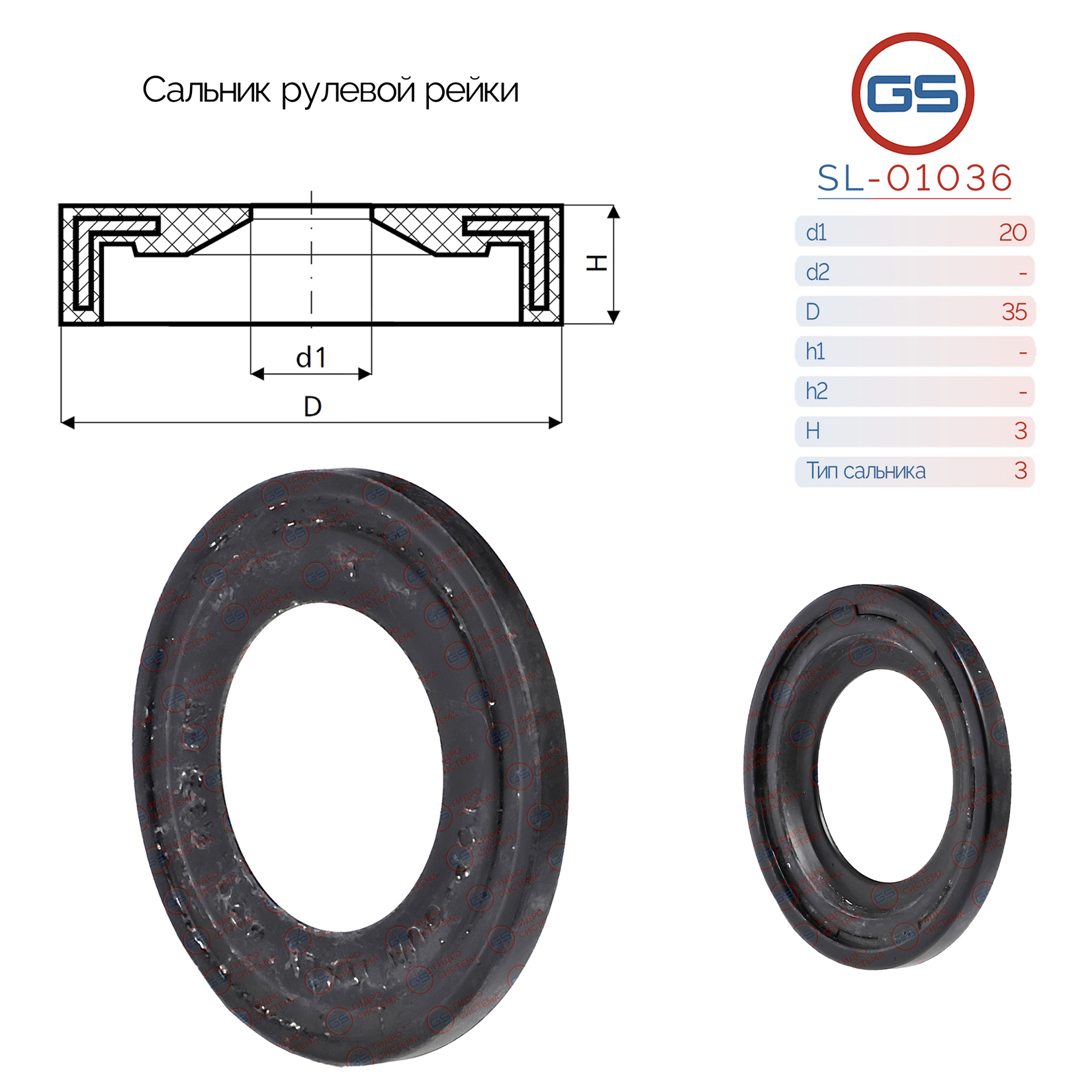 SL-01036 GS Сальник рулевой рейки 20*35*3 (3)