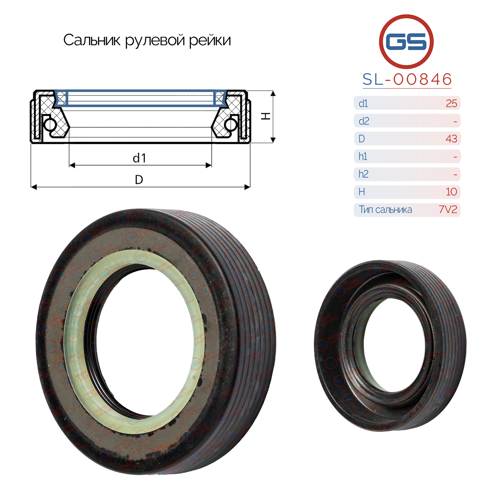 SL-00846 GS Сальник рулевой рейки 25*43*10 (7V2)