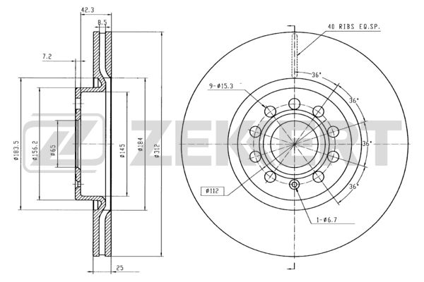 Диск торм. перед. Audi A1 11-, A3 II, III 03-, Q3 11-, TT 06-, Skoda Octavia (1Z) 05-, Superb (3U) 01-