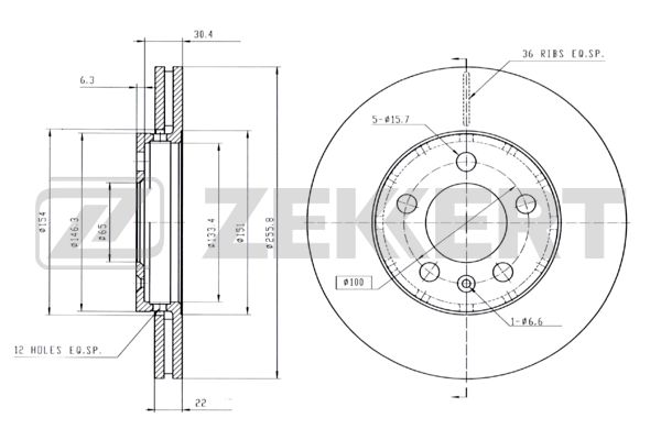 Диск торм. перед. VW Polo IV, V 02-, Golf IV, V 97-, Audi A1 10-, A3 96-, Skoda Octavia (1U) 96- (с доп. отверстиями)