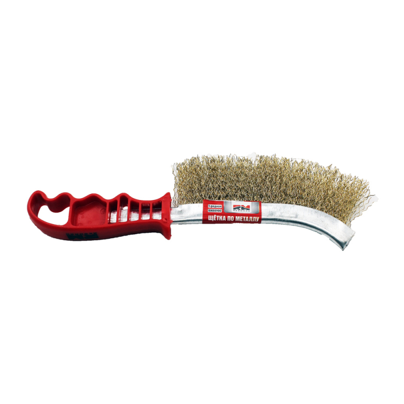 Щетка стальная по металлу, ручная в пластиковом корпусе с прорезиненной рукояткой, латунная проволок