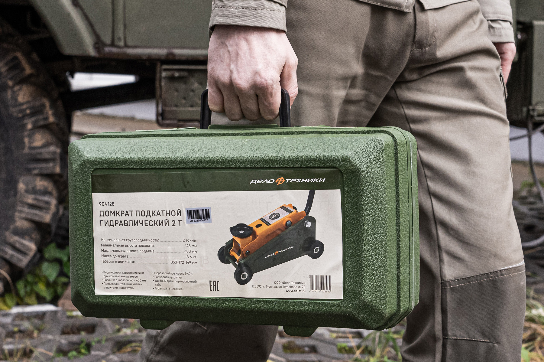 Домкрат подкатной 2 тонны, 145—400 мм, в кейсе